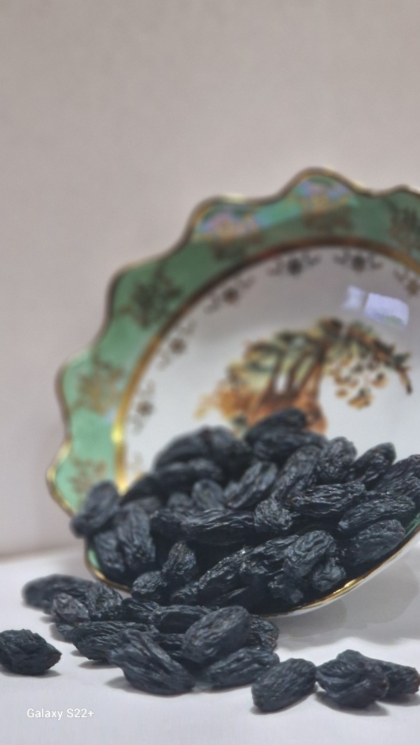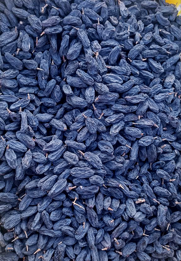 Üzbegisztáni fekete mazsola, természetes módon, napon szárított szőlőből készül. A